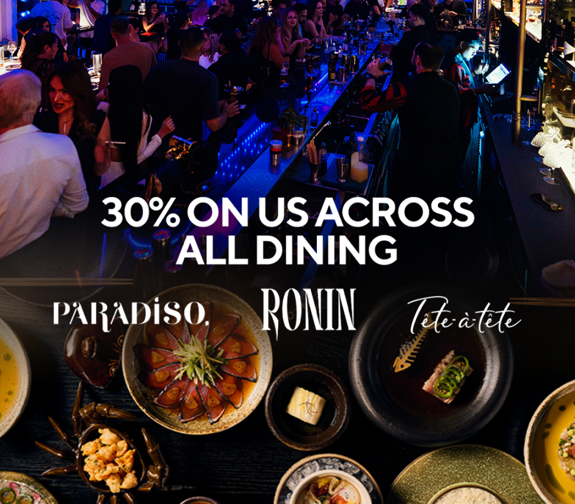 Join us for a chic lunch beneath our lavender ceiling, begin your evening in the seductive jewellery-box bar, or move on to the ocean-view terrace with sweeping vistas of Ain Dubai. Every visit is a journey to the Riviera — with hand-picked DJs setting the soundtrack, each night becomes an extraordinary dining experience to remember.
